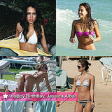 Jessica Alba turns 30 today, and we're celebrating her big milestone with a look back at her hottest bikini pictures - one for each year! Starting with her early days as the star of Dark Angel, Jessica's been no stranger to the two-piece, posing for countless hot swimsuit spreads in magazines from GQ to Harper's Bazaar. She looks fantastic in print, but she's equally stunning and sexy in real life, lounging on the beach and splashing in the water during her many vacations with husband Cash Warren. The actress even rocked a bikini just four months after giving birth to her daughter, Honor, in 2007. Click through to see our picks for Jessica's most scorching bikini moments!